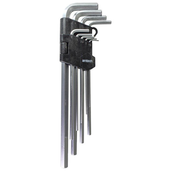 9pcs Extra Long Hex Key Key Set Metric 1.5mm to 10mm Allen Key Chrome Finish